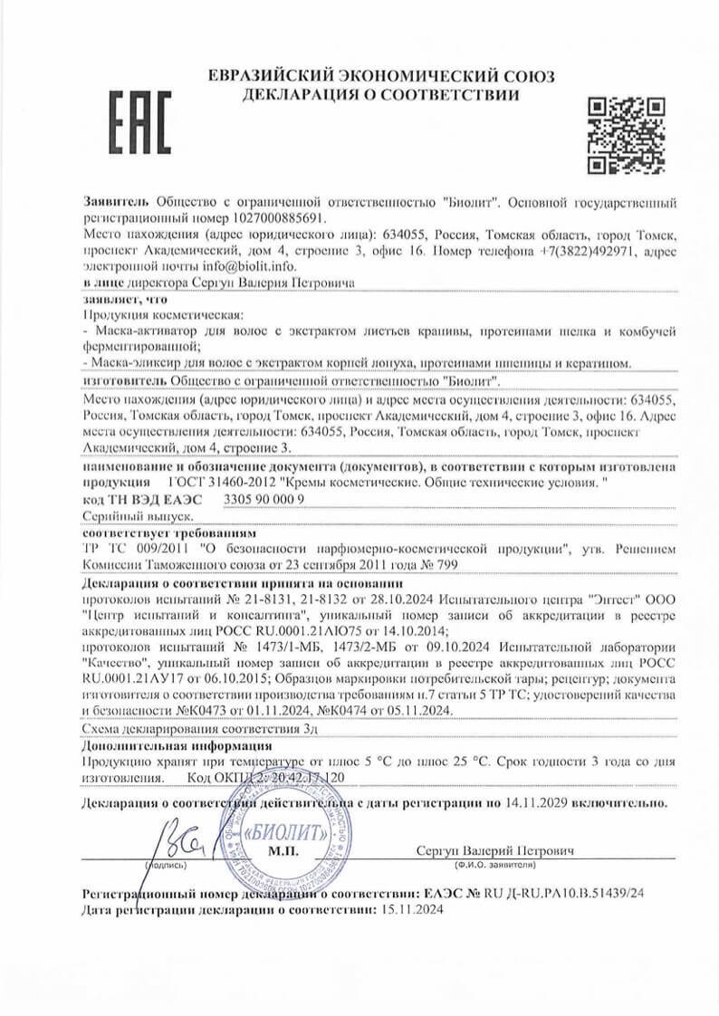 Ключевыми компонентами маски являются экстракт корней лопуха большого, масло ши, гидролизованные протеины пшеницы, гидролизованный кератин, аллантоин, витамины Е.