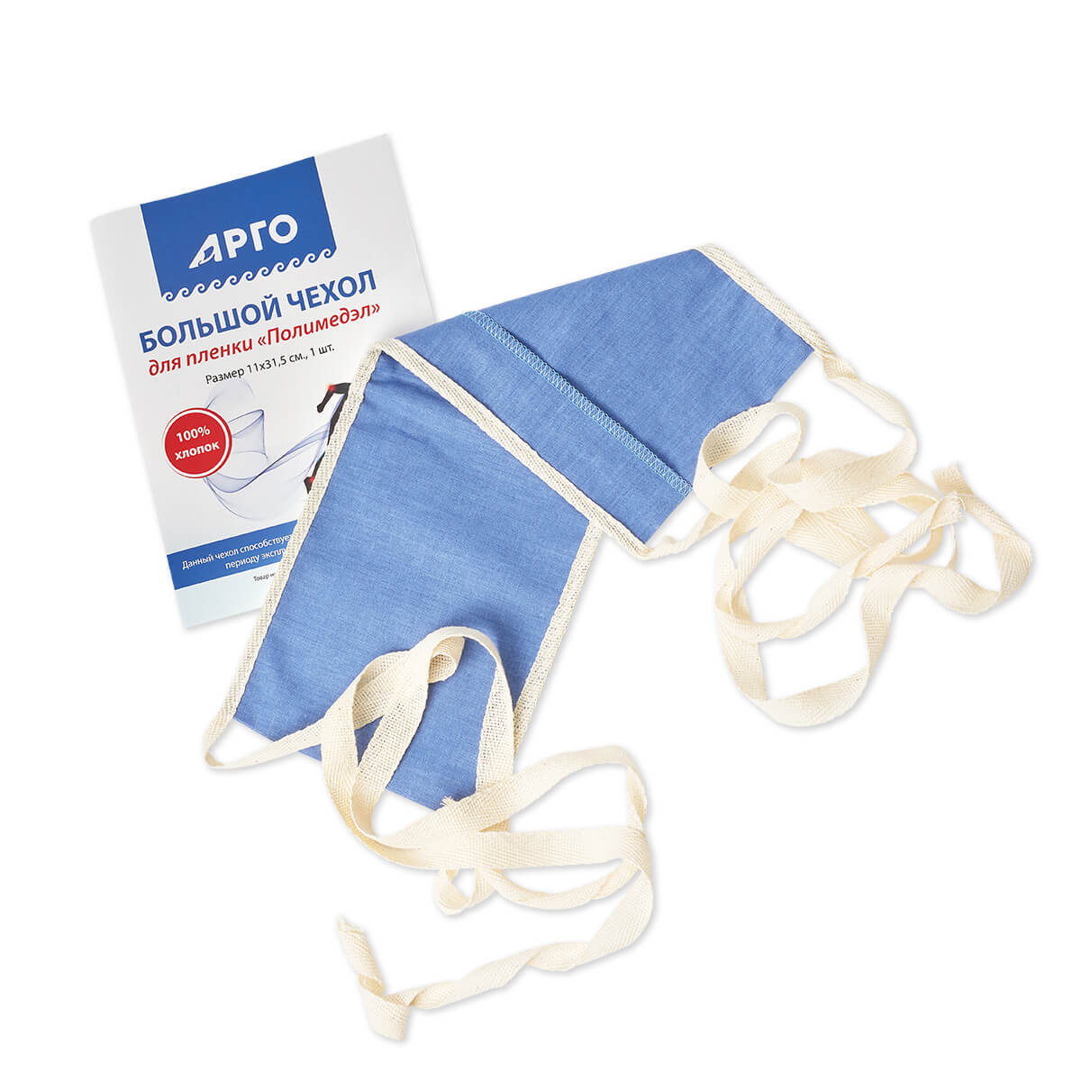 Данный чехол предназначен для удобной фиксации пленки «Полимедэл» на любом участке тела, для этого на чехле предусмотрены тесёмки.